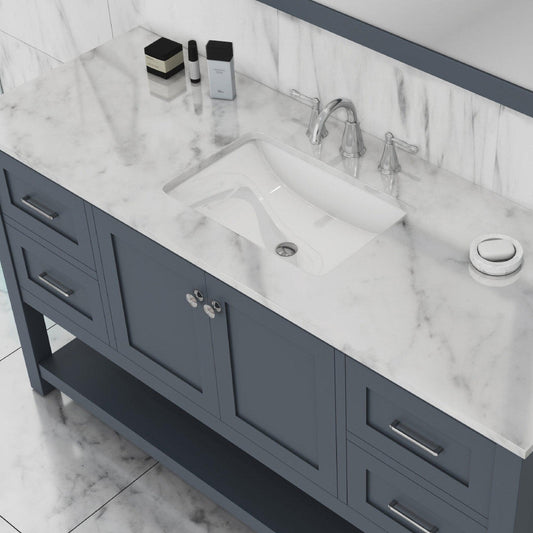 Alya Bath Wilmington 60" Single Gray Freestanding Bathroom Vanity With Carrara Marble Top, Ceramic Sink and Wall Mounted Mirror
