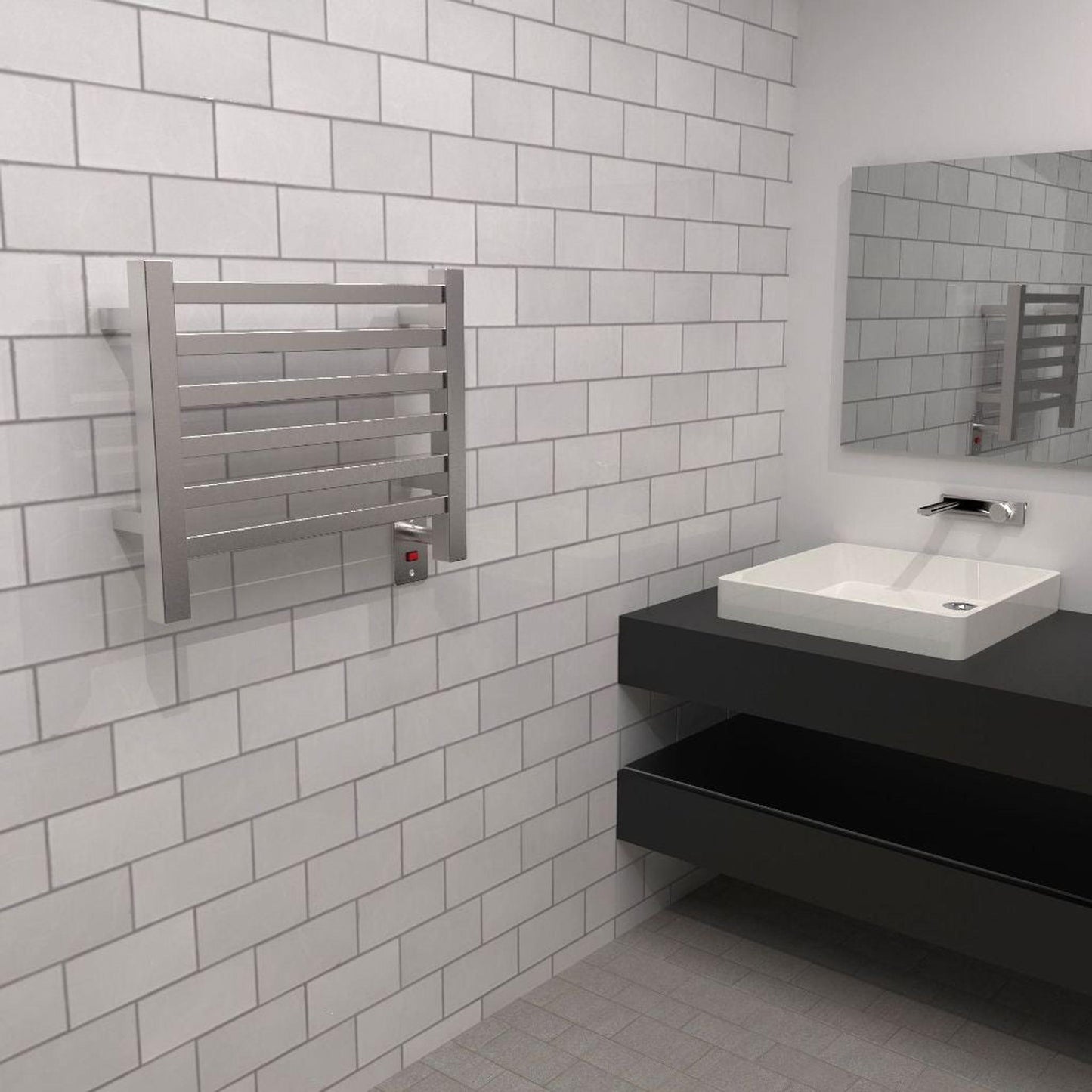 Amba Quadro 20" x 16" 6-Bar Brushed Stainless Steel Finish Hardwired Towel Warmer With Push Button On/Off Switch
