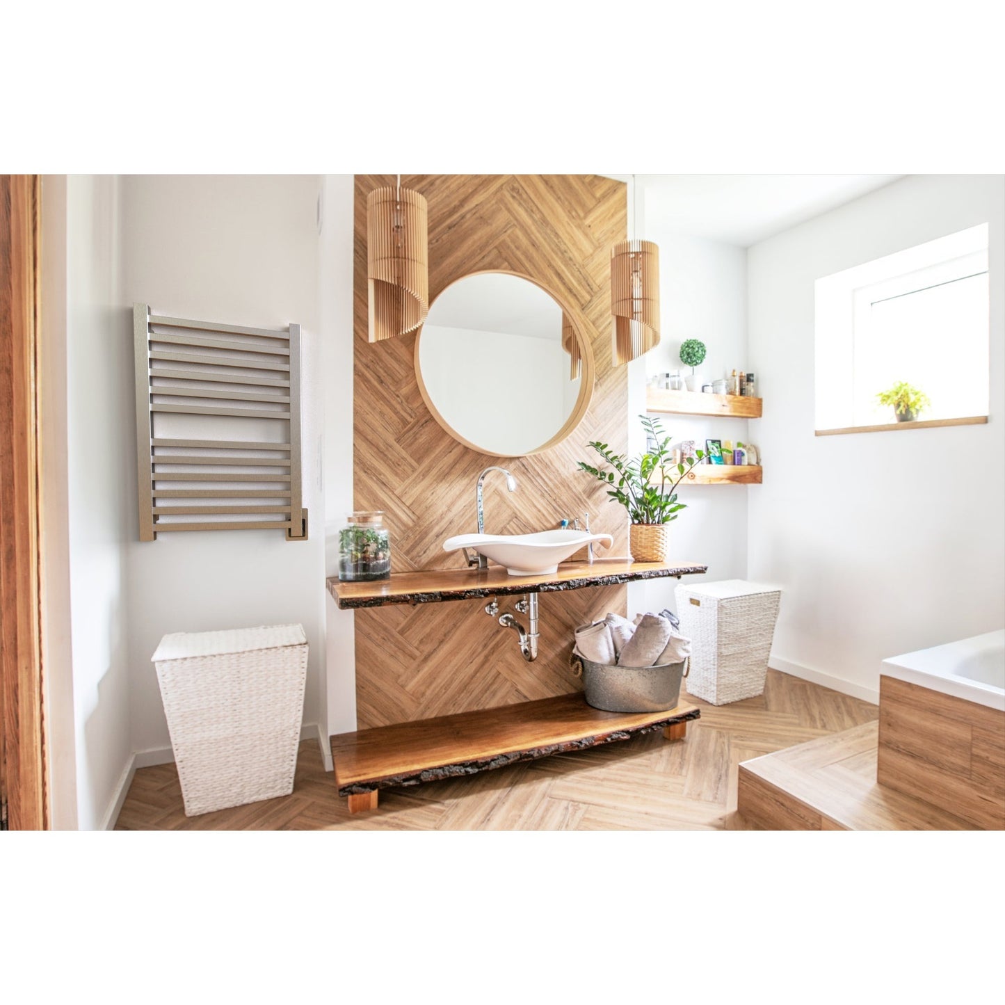 - Space-Saving Design: Replace traditional towel bars and robe hooks. Hang towels on the horizontal sections and bathrobes on the heated vertical bars.