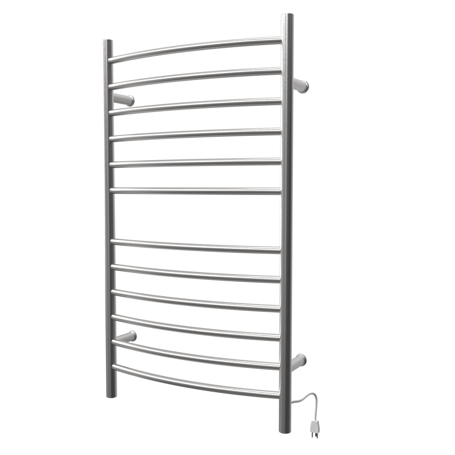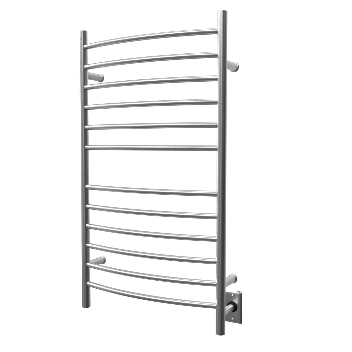 Amba Radiant Large Curved 12-Bar Brushed Stainless Steel Hardwired and Plug-in Combo Towel Warmer