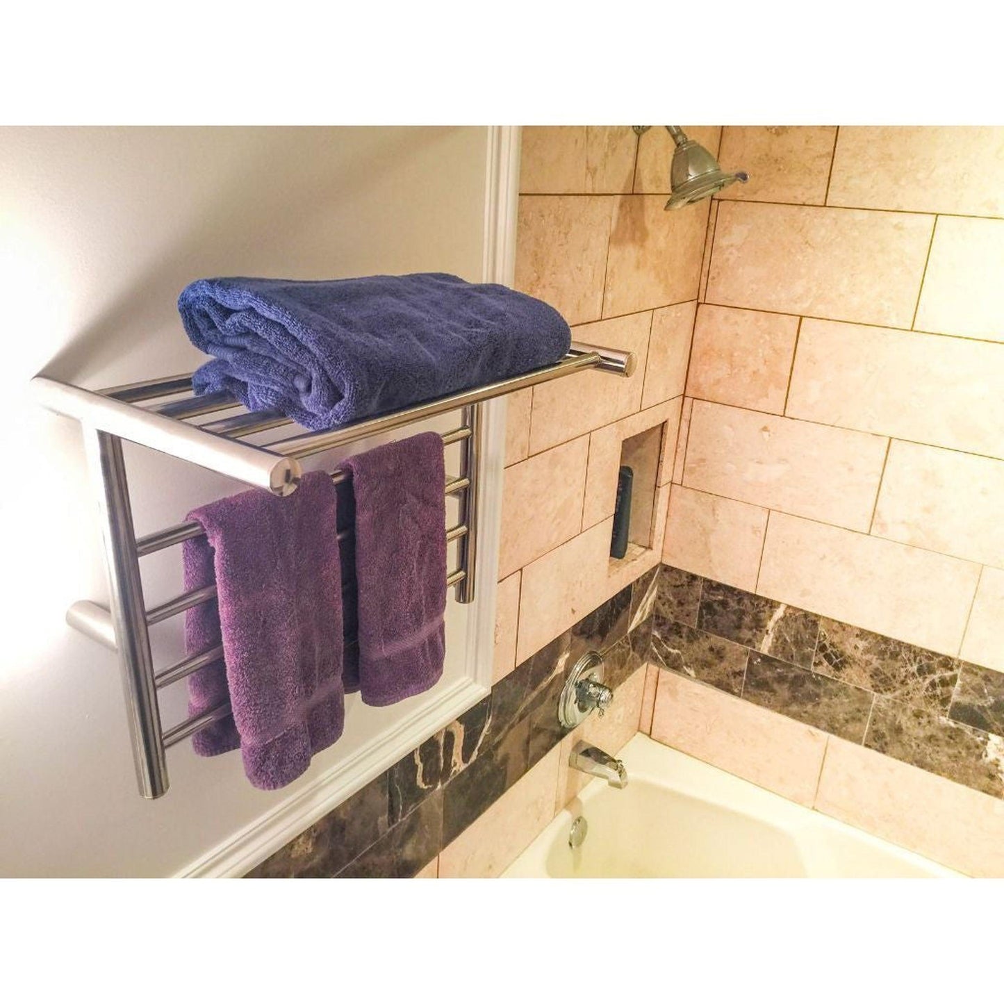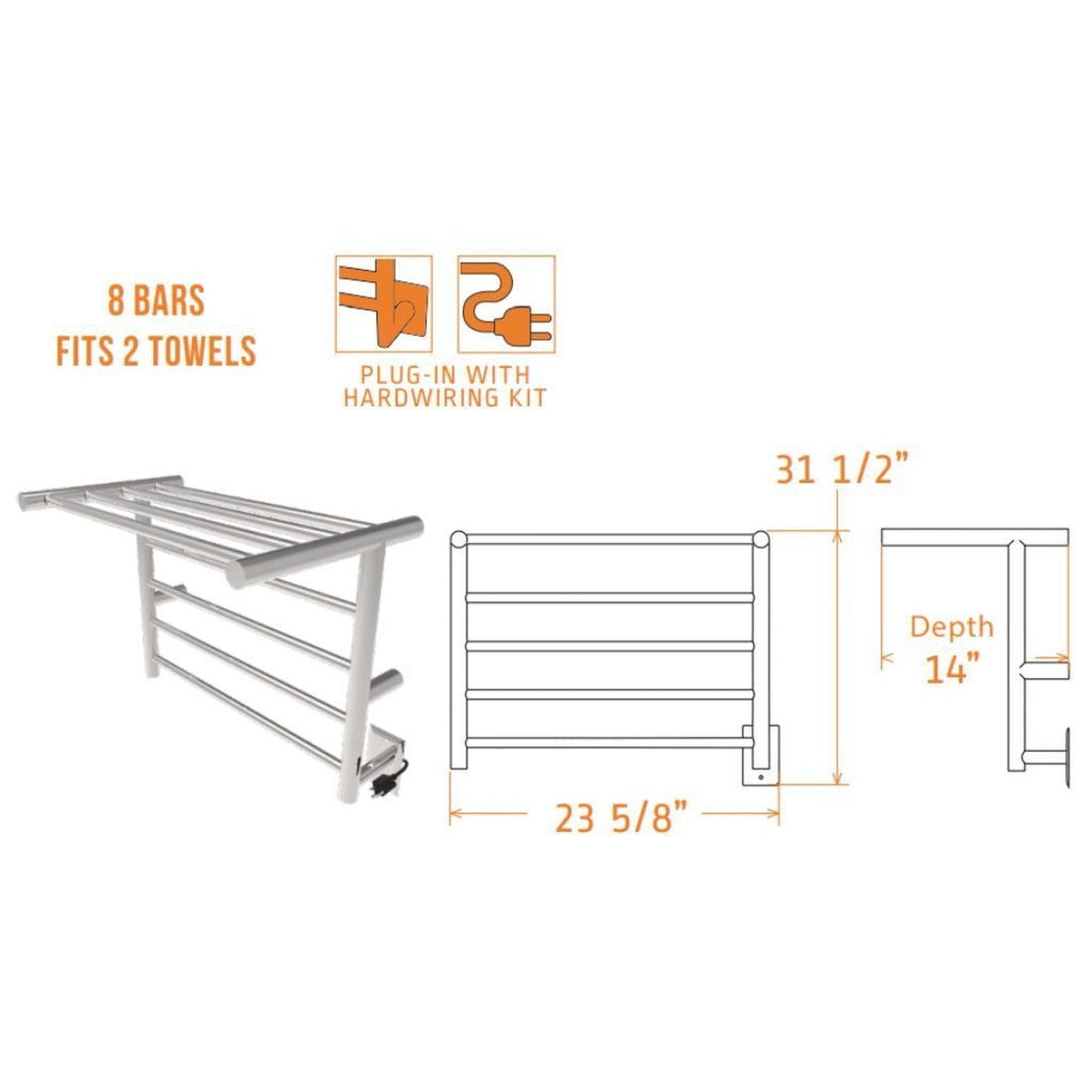 Amba Radiant Shelf 8-Bar Polished Stainless Steel Hardwired and Plug-In Combo Towel Warmer