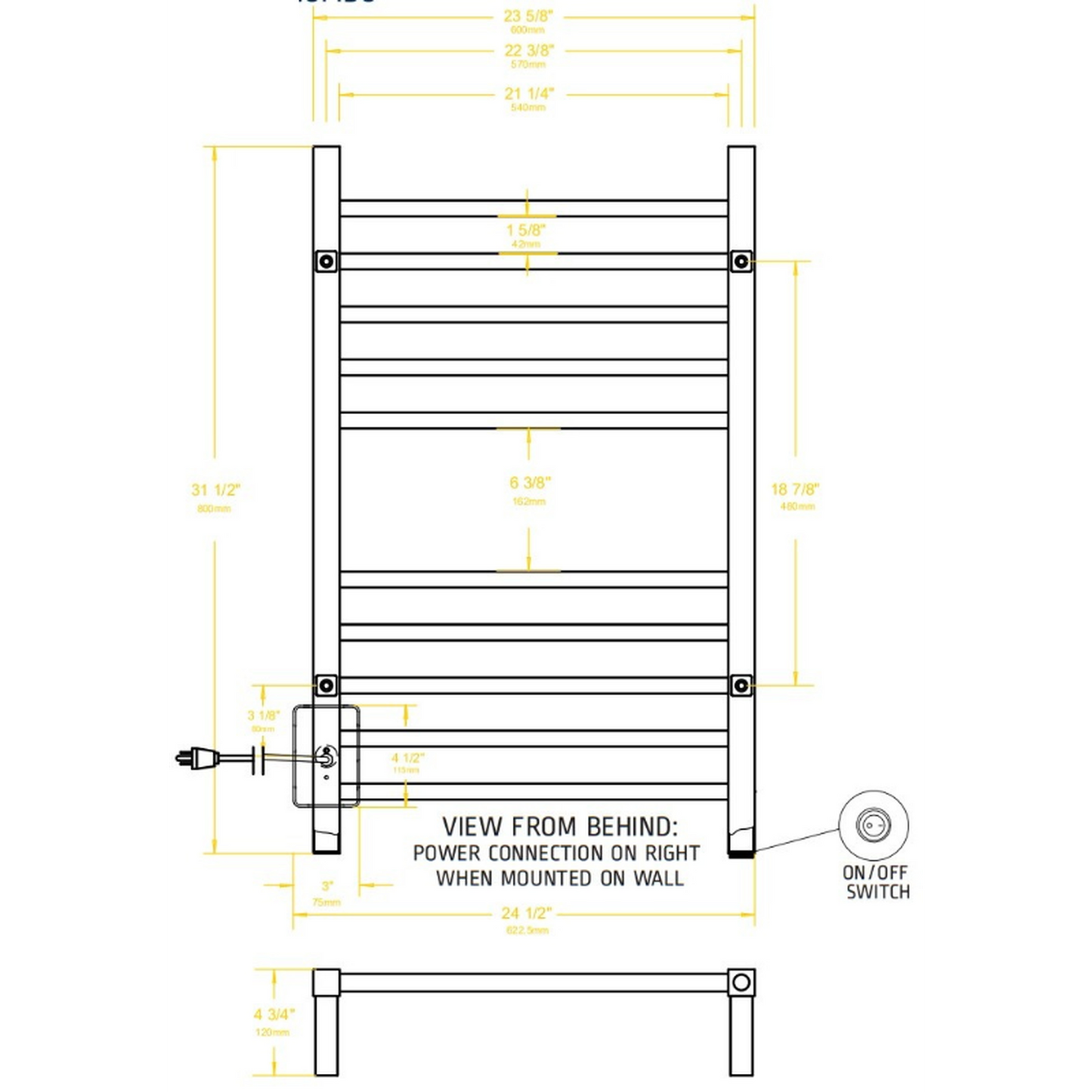 - Space-Saving Design: Replace traditional towel bars and robe hooks. Hang two towels on the horizontal sections and bathrobes from the top of the vertical bars, all of which are heated for added convenience.