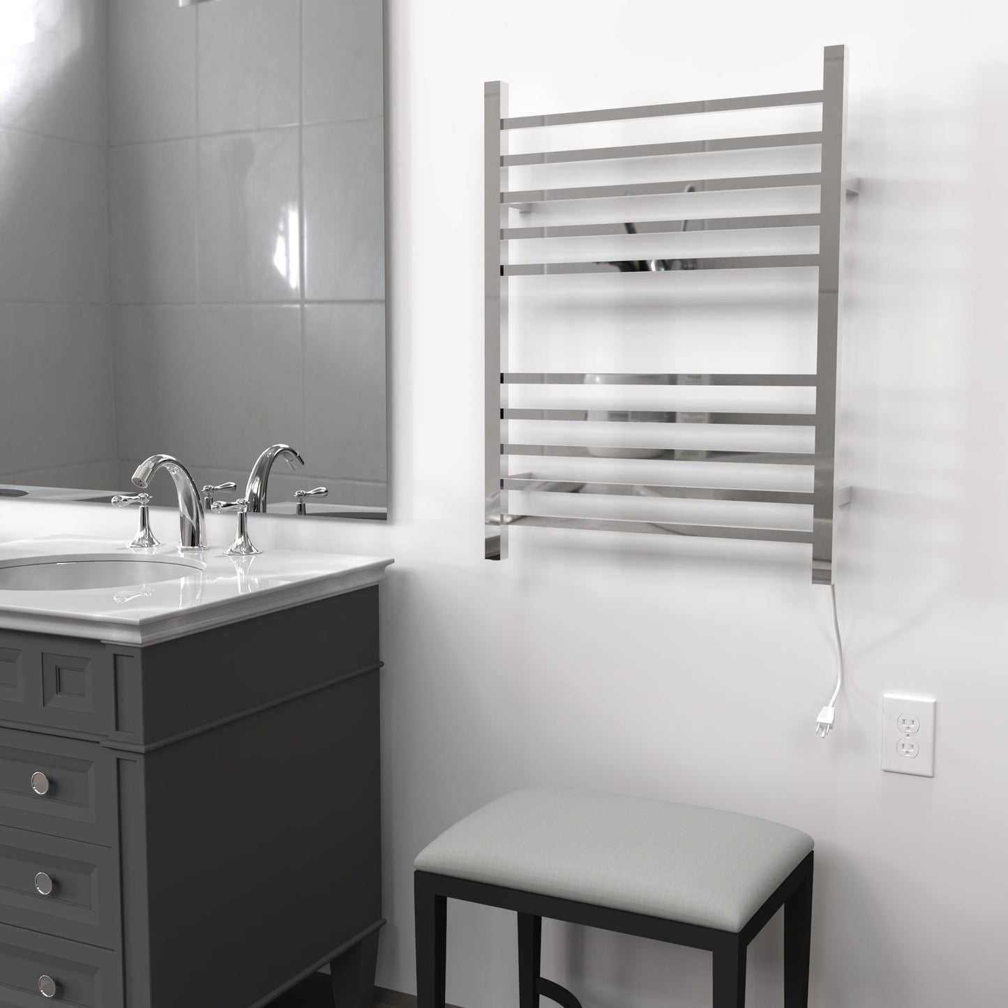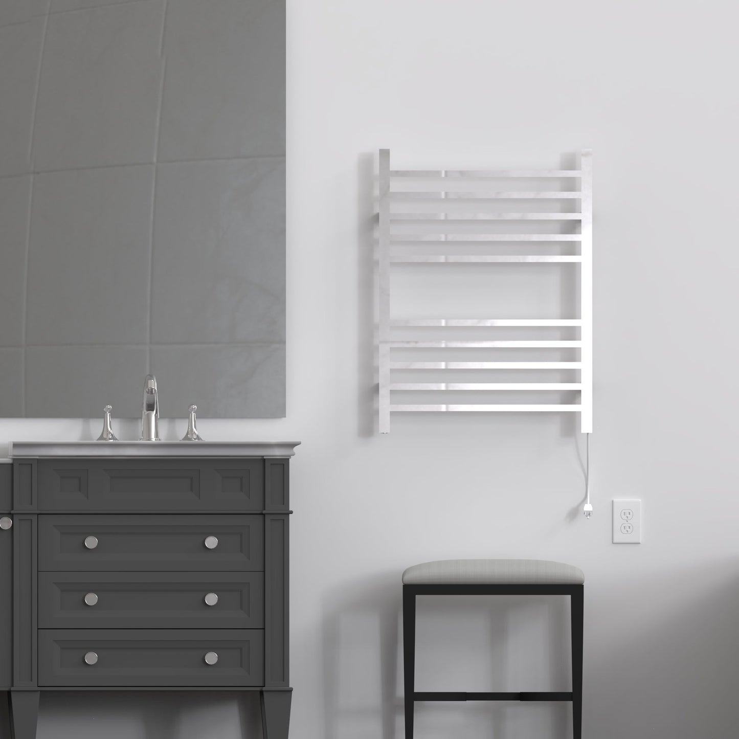 Amba Radiant Square 10-Bar Polished Stainless Steel Hardwired and Plug-In Combo Towel Warmer