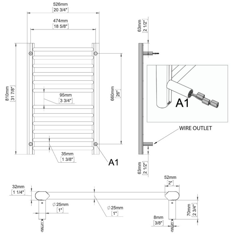 - Space-Saving Design: Replace traditional towel bars and robe hooks. Hang towels on the horizontal sections and bathrobes on the heated vertical bars.