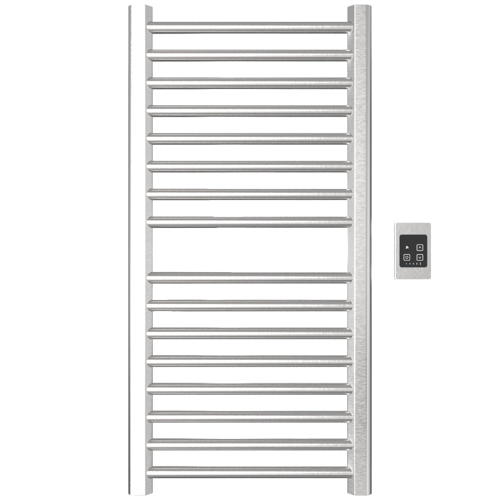 Achieve your desired comfort with the new Touch Digital Heat Controller (sold separately), offering five power levels for precise temperature control. It not only dries and warms your towels and bathrobes but also adds warmth to your entire bathroom. It's also ideal for laundry rooms, mud rooms, and wet rooms to dry delicate garments, bathing suits, and ski jackets efficiently, just like a drying rack. Special order finishes and sizes also available for a truly custom product.