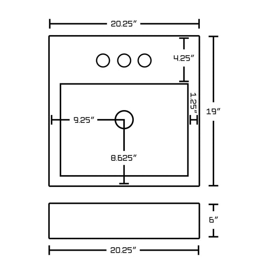 20.25-in. x 19-in. Rectangle Bathroom Vessel Sink White Enamel Glaze