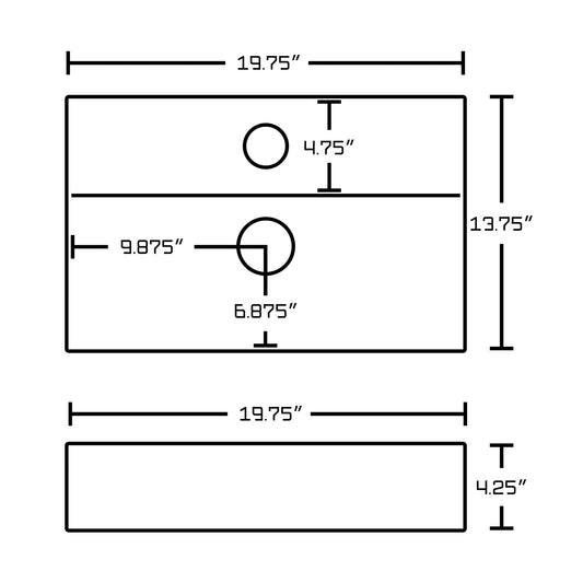 • THIS PRODUCT INCLUDE(S): 1x bathroom vessel sink in white color, 1x bathroom sink faucet in chrome color. This product is a bundle (set of multiple products). This bathroom vessel sink set features a rectangle shape with a modern style. This product is made for above counter installation. DIY installation instructions are included in the box. This bathroom vessel sink set is designed for a 1 hole faucet and the faucet drilling location is on the center. Comes with an overflow for safety. This bathroom vessel sink set features 1 sink. This bathroom vessel sink set is made with ceramic. The primary color of this product is white and it comes with chrome hardware. Smooth non-porous surface; prevents from discoloration and fading. Double fired and glazed for durability and stain resistance. 1.75-in. standard USA-Canada drain opening. 19.75-in. Width (left to right). 13.75-in. Depth (back to front). 7-in. Height (top to bottom). All dimensions are nominal. This product can usually be shipped out in 1 day. Quality control approved in Canada. Each box on your order is physically opened-up and inspected to make sure only the highest quality product is shipped. We take and store photos of every single quality audit of every single order we ship. You can see them when you track your order on our website.