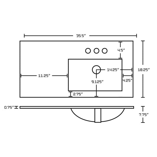 • THIS PRODUCT INCLUDE(S): 1x ceramic top in white color, 1x overflow cap in gold color. This product is a bundle (set of multiple products). This ceramic top set features a rectangle shape with a transitional style. This product is made for drop in installation. DIY installation instructions are included in the box. This ceramic top set is designed for a 3h4-in. faucet and the faucet drilling location is on the right. Comes with an overflow for safety. This ceramic top set features 1 sink. This ceramic top set is made with ceramic. The primary color of this product is white and it comes with gold hardware. Smooth non-porous surface; prevents from discoloration and fading. Double fired and glazed for durability and stain resistance. 1.75-in. standard USA-Canada drain opening. 35.5-in. Width (left to right). 18.25-in. Depth (back to front). 7.75-in. Height (top to bottom). All dimensions are nominal. This product can usually be shipped out in 1 day. Quality control approved in Canada. Each box on your order is physically opened-up and inspected to make sure only the highest quality product is shipped. We take and store photos of every single quality audit of every single order we ship. You can see them when you track your order on our website.