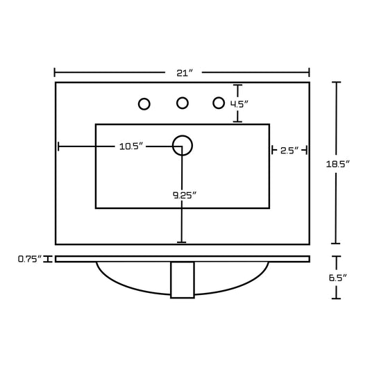 - THIS PRODUCT INCLUDE(S): 1x ceramic top in white color, 1x bathroom sink faucet in chrome color. This product is a bundle (set of multiple products). This ceramic top set belongs to the vee series. This ceramic top set features a rectangle shape with a transitional style. This product is made for drop in installation. DIY installation instructions are included in the box. This ceramic top set is designed for a 3h8-in. faucet and the faucet drilling location is on the center. Comes with an overflow for safety. This ceramic top set features 1 sink. This ceramic top set is made with ceramic. The primary color of this product is white and it comes with chrome hardware. Smooth non-porous surface; prevents from discoloration and fading. Double fired and glazed for durability and stain resistance. 1.75-in. standard USA-Canada drain opening. 21-in. Width (left to right). 18.5-in. Depth (back to front). 6.5-in. Height (top to bottom). All dimensions are nominal. This product can usually be shipped out in 1 day. Quality control approved in Canada. Each box on your order is physically opened-up and inspected to make sure only the highest quality product is shipped. We take and store photos of every single quality audit of every single order we ship. You can see them when you track your order on our website.
