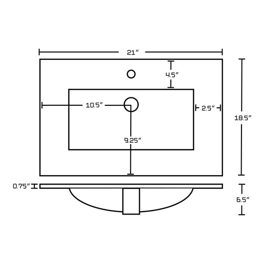 • THIS PRODUCT INCLUDE(S): 1x ceramic top in white color, 1x bathroom sink faucet in chrome color, 1x overflow cap in chrome color. This product is a bundle (set of multiple products). This ceramic top set belongs to the vee series. This ceramic top set features a rectangle shape with a modern style. This product is made for drop in installation. DIY installation instructions are included in the box. This ceramic top set is designed for a 1 hole faucet and the faucet drilling location is on the center. Comes with an overflow for safety. This ceramic top set features 1 sink. This ceramic top set is made with ceramic. The primary color of this product is white and it comes with chrome hardware. Smooth non-porous surface; prevents from discoloration and fading. Double fired and glazed for durability and stain resistance. 1.75-in. standard USA-Canada drain opening. 21-in. Width (left to right). 18.5-in. Depth (back to front). 6.79-in. Height (top to bottom). All dimensions are nominal. This product can usually be shipped out in 1 day. Quality control approved in Canada. Each box on your order is physically opened-up and inspected to make sure only the highest quality product is shipped. We take and store photos of every single quality audit of every single order we ship. You can see them when you track your order on our website.