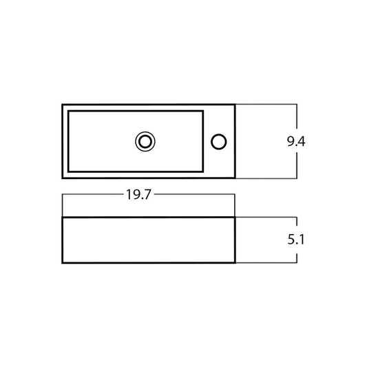 19.7-in. W Wall Mount White Bathroom Vessel Sink For 1 Hole Right Drilling