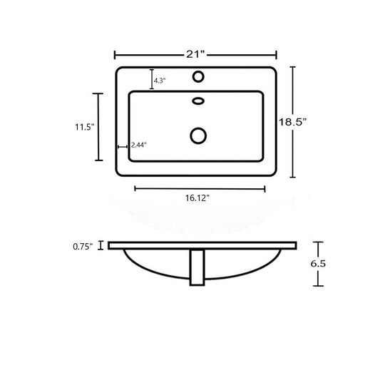 American Imaginations AI-29876 21" White Rectangular Drop In Transitional Ceramic Top Set