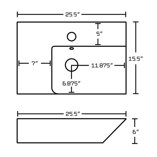 - THIS PRODUCT INCLUDE(S): 1x bathroom vessel sink in white color, 1x bathroom sink drain in white color. This product is a bundle (set of multiple products). This bathroom vessel sink set features a rectangle shape with a modern style. This product is made for above counter installation. DIY installation instructions are included in the box. This bathroom vessel sink set is designed for a 1 hole faucet and the faucet drilling location is on the center. Comes with an overflow for safety. This bathroom vessel sink set features 1 sink. This bathroom vessel sink set is made with ceramic. The primary color of this product is white and it comes with white hardware. Smooth non-porous surface; prevents from discoloration and fading. Double fired and glazed for durability and stain resistance. 1.75-in. standard USA-Canada drain opening. Constructed with lead-free brass, ensuring strength and durability. Solid bulky brass feel (not cheap and light). 25.5-in. Width (left to right). 15.5-in. Depth (back to front). 6-in. Height (top to bottom). All dimensions are nominal. This product can usually be shipped out in 1 day. Quality control approved in Canada. Each box on your order is physically opened-up and inspected to make sure only the highest quality product is shipped. We take and store photos of every single quality audit of every single order we ship. You can see them when you track your order on our website.
