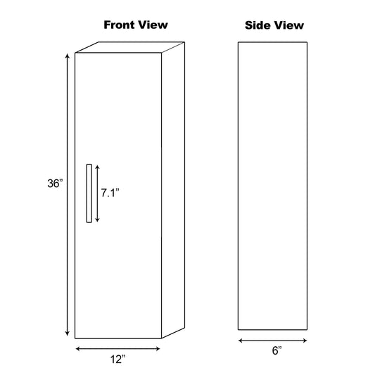 - 6-in. Depth (back to front). 36-in. Height (top to bottom). All dimensions are nominal.
