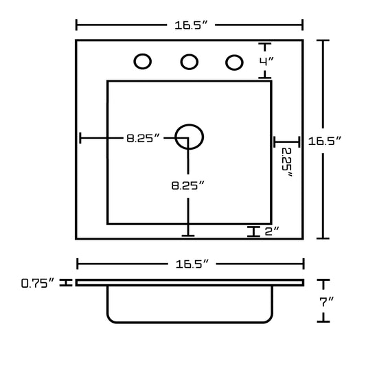 - THIS PRODUCT INCLUDE(S): 1x ceramic top in white color, 1x bathroom sink drain in chrome color, 1x bathroom sink faucet in chrome color. This product is a bundle (set of multiple products). This ceramic top set features a square shape with a transitional style. This product is made for drop in installation. DIY installation instructions are included in the box. This ceramic top set is designed for a 3h8-in. faucet and the faucet drilling location is on the center. Comes with an overflow for safety. This ceramic top set features 1 sink. This ceramic top set is made with ceramic. The primary color of this product is white and it comes with chrome hardware. Smooth non-porous surface; prevents from discoloration and fading. Double fired and glazed for durability and stain resistance. 1.75-in. standard USA-Canada drain opening. Constructed with lead-free brass, ensuring strength and durability. Solid bulky brass feel (not cheap and light). 16.5-in. Width (left to right). 16.5-in. Depth (back to front). 7-in. Height (top to bottom). All dimensions are nominal. This product can usually be shipped out in 1 day. Quality control approved in Canada. Each box on your order is physically opened-up and inspected to make sure only the highest quality product is shipped. We take and store photos of every single quality audit of every single order we ship. You can see them when you track your order on our website.