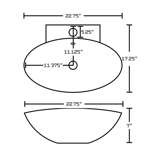 - THIS PRODUCT INCLUDE(S): 1x bathroom vessel sink in white color, 1x bathroom sink faucet in chrome color, 1x bathroom sink drain in chrome color. This product is a bundle (set of multiple products). This bathroom vessel sink set features a oval shape with a transitional style. This product is made for above counter installation. DIY installation instructions are included in the box. This bathroom vessel sink set is designed for a 1 hole faucet and the faucet drilling location is on the center. Comes with an overflow for safety. This bathroom vessel sink set features 1 sink. This bathroom vessel sink set is made with ceramic. CUPC certified. Most city inspectors require the use of certified products to get approval. The primary color of this product is white and it comes with chrome hardware. Smooth non-porous surface; prevents from discoloration and fading. Double fired and glazed for durability and stain resistance. 1.75-in. standard USA-Canada drain opening. Constructed with lead-free brass, ensuring strength and durability. Solid bulky brass feel (not cheap and light). 22.75-in. Width (left to right). 17.25-in. Depth (back to front). 7-in. Height (top to bottom). All dimensions are nominal. This product can usually be shipped out in 1 day. Quality control approved in Canada. Each box on your order is physically opened-up and inspected to make sure only the highest quality product is shipped. We take and store photos of every single quality audit of every single order we ship. You can see them when you track your order on our website.