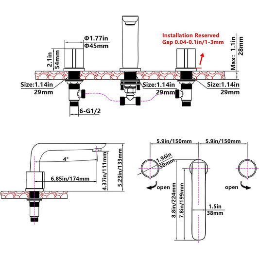 • This bathroom sink faucet is designed for a 3h8-in. faucet and the faucet drilling location is on the deck mount.