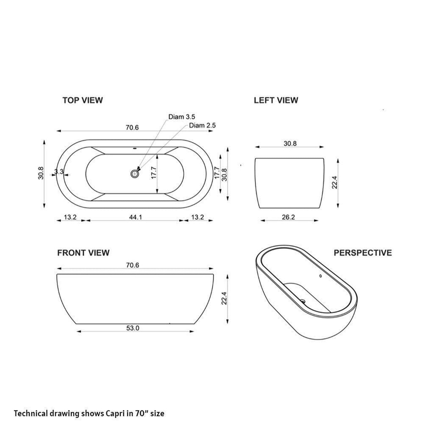 The Capri freestanding copper tub is a minimalist take on the classic tub design. This luxurious work of art gives a visual boost to any bathroom. Perfectly rounded sides and deep interiors make for a spacious soaking tub. This roomy tub has enough space for two.