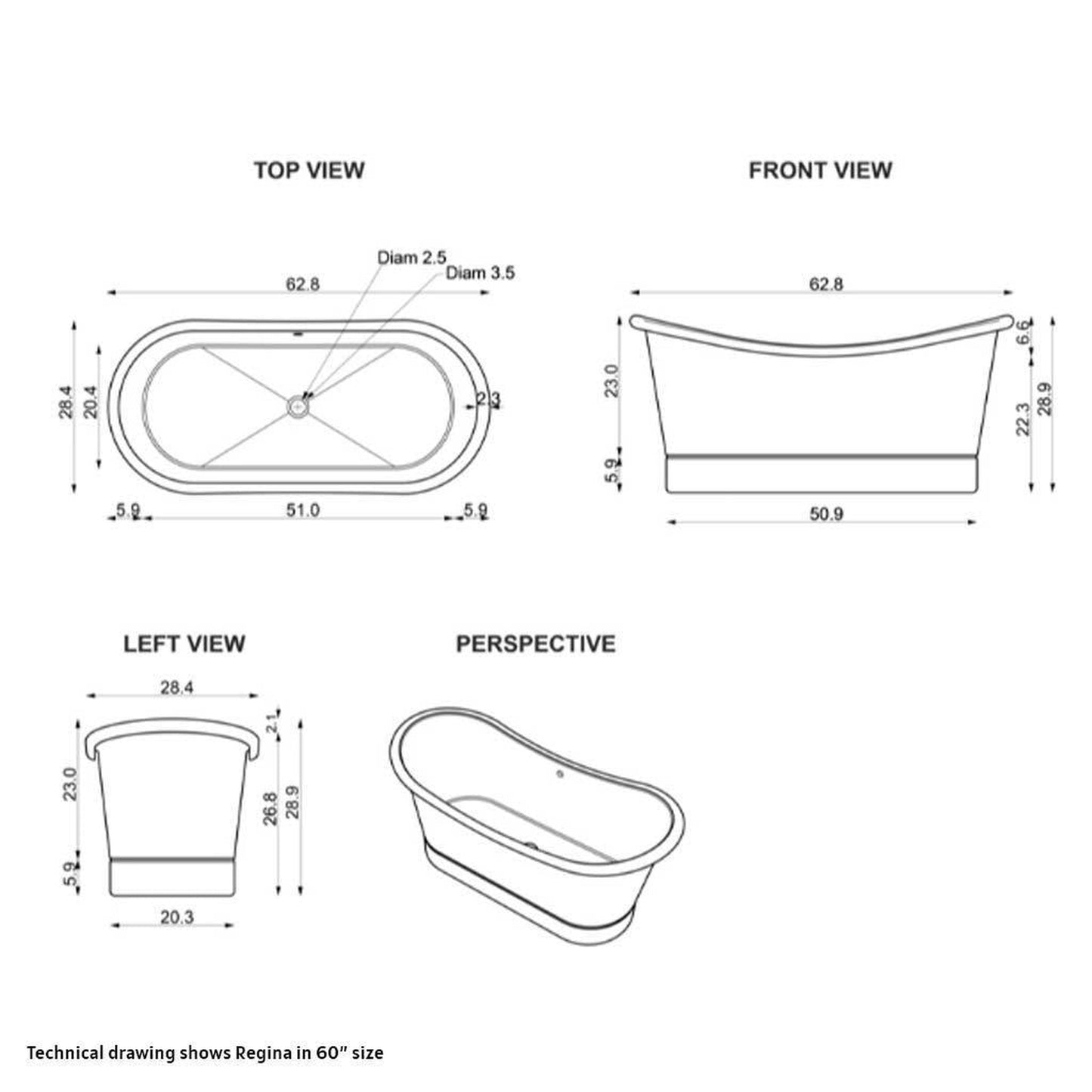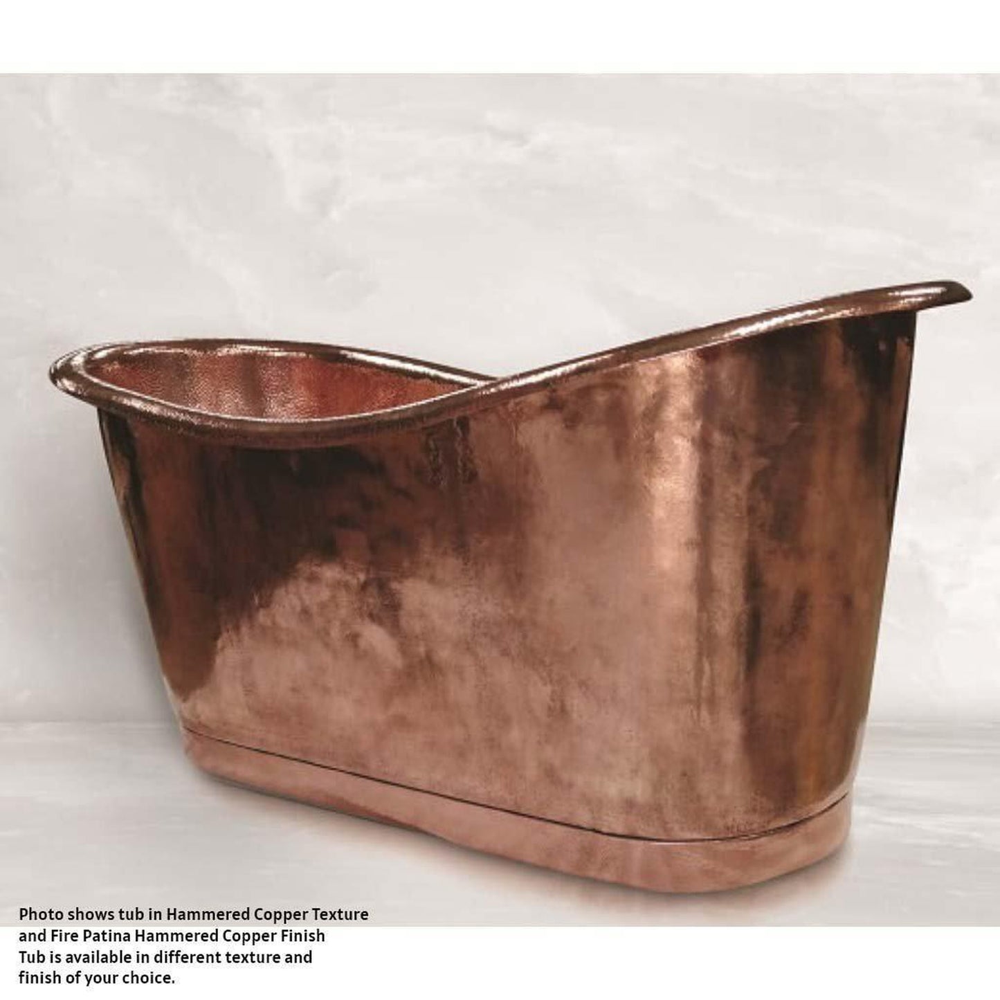 With beautiful romantic shapes, let the Regina old-world-elegance become the striking focal point of your bathroom. This artisan crafted copper bath tub is designed for sumptuous comfort and visual delight. Based on turn of the century vintage copper double slipper bateau bathtubs, which sits directly on the floor on an integral plinth.It features a waste hole that is cut into the bathtub skirt and an optional overflow by request. The addition of an overflow makes installation easy and allows for best possible drainage.