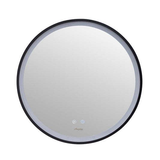 Ancerre Designs Cirque 30" Modern Round LED Lighted Black Framed Bathroom Vanity Mirror With Defogger, Dimmer and Mounting Hardware