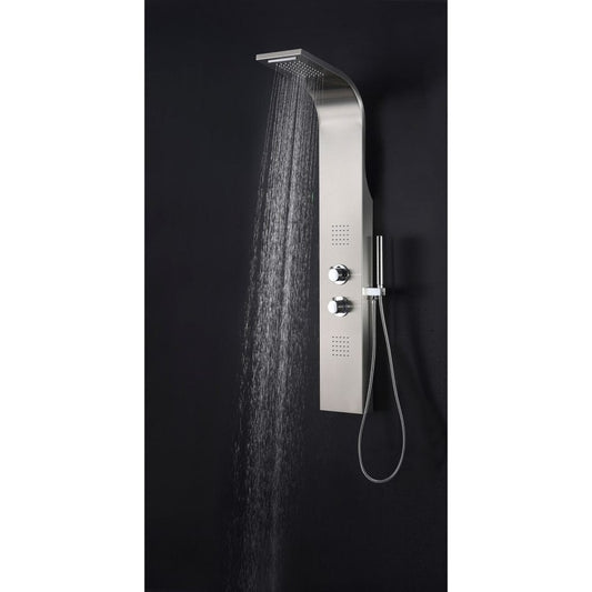 ANZZI Anchorage Series 51" Brushed Stainless Steel 2-Jetted Full Body Shower Panel With Heavy Rain Shower Head and Euro-Grip Hand Sprayer
