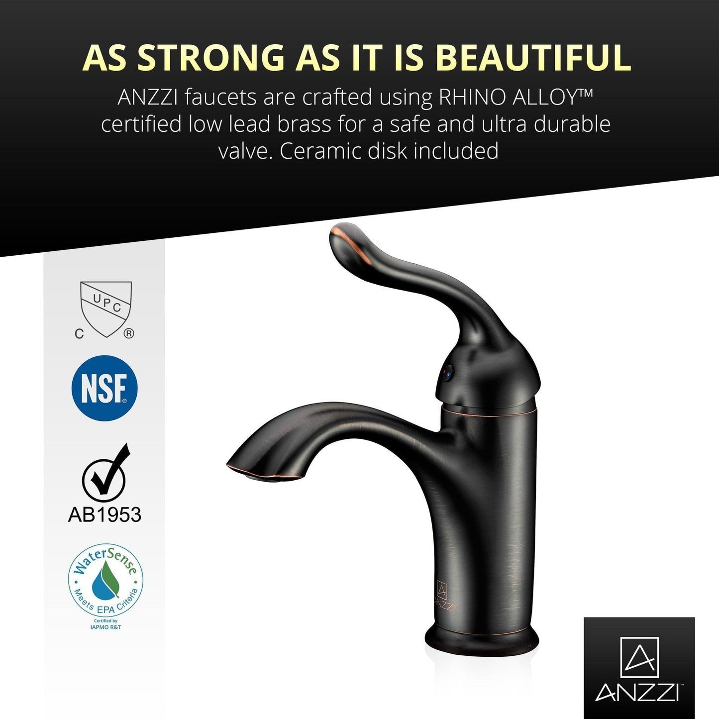 ANZZI is committed to introducing the latest in European bath fixture design to the North American home. ANZZI presents the Arc Series Single Handle Bathroom Sink Faucet. Crafted using lead-free RHINO ALLOY certified brass as the interior and our Opulent Oil Rubbed Bronze rust resistant finish. This all metal combination of high quality materials ensures you will enjoy a flawlessly performing faucet for many years to come. The deceptively simple single handle design allows for complete and easy control of both water flow and temperature while maintain the fine minimalist aesthetic to match with any modern or contemporary décor style. The ANZZI Arc Series is listed certified under cUPC, NSF, AB1953, Watersense, ADA for installation within North America.