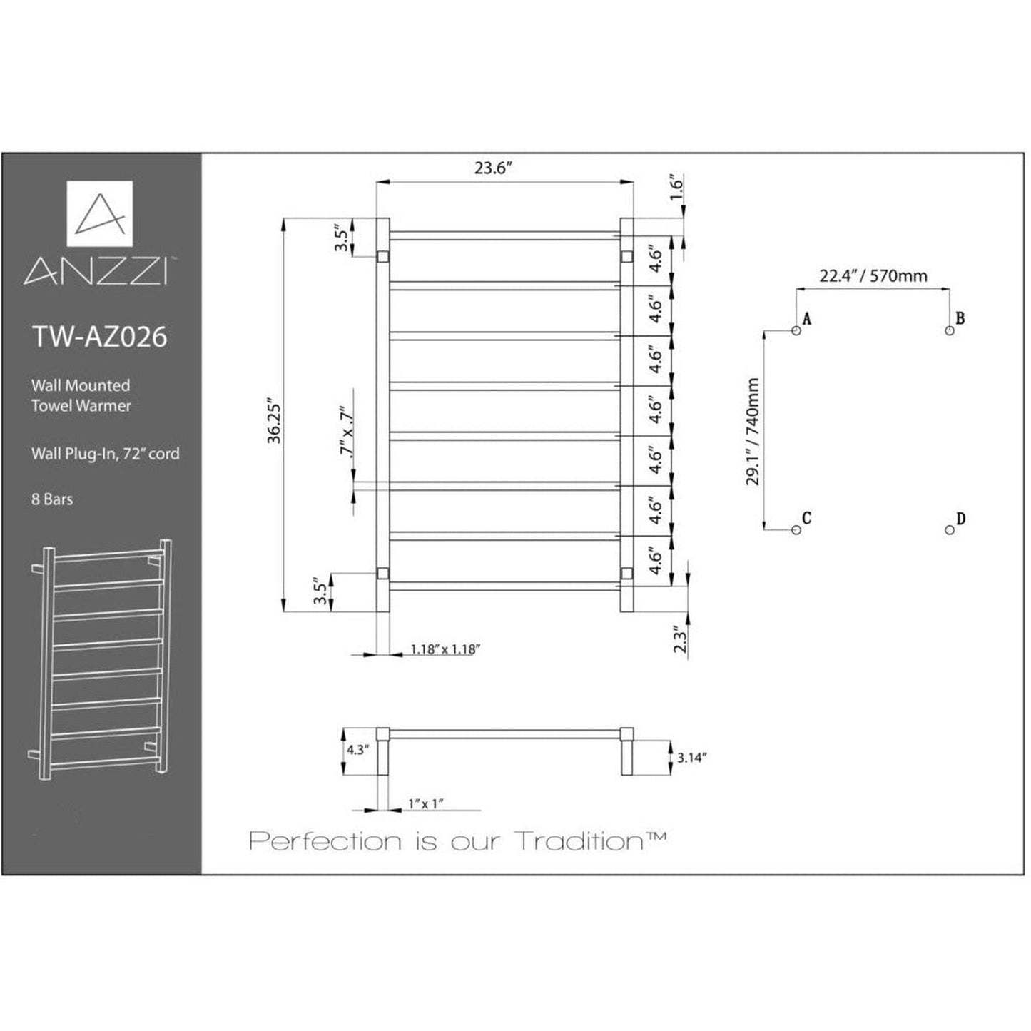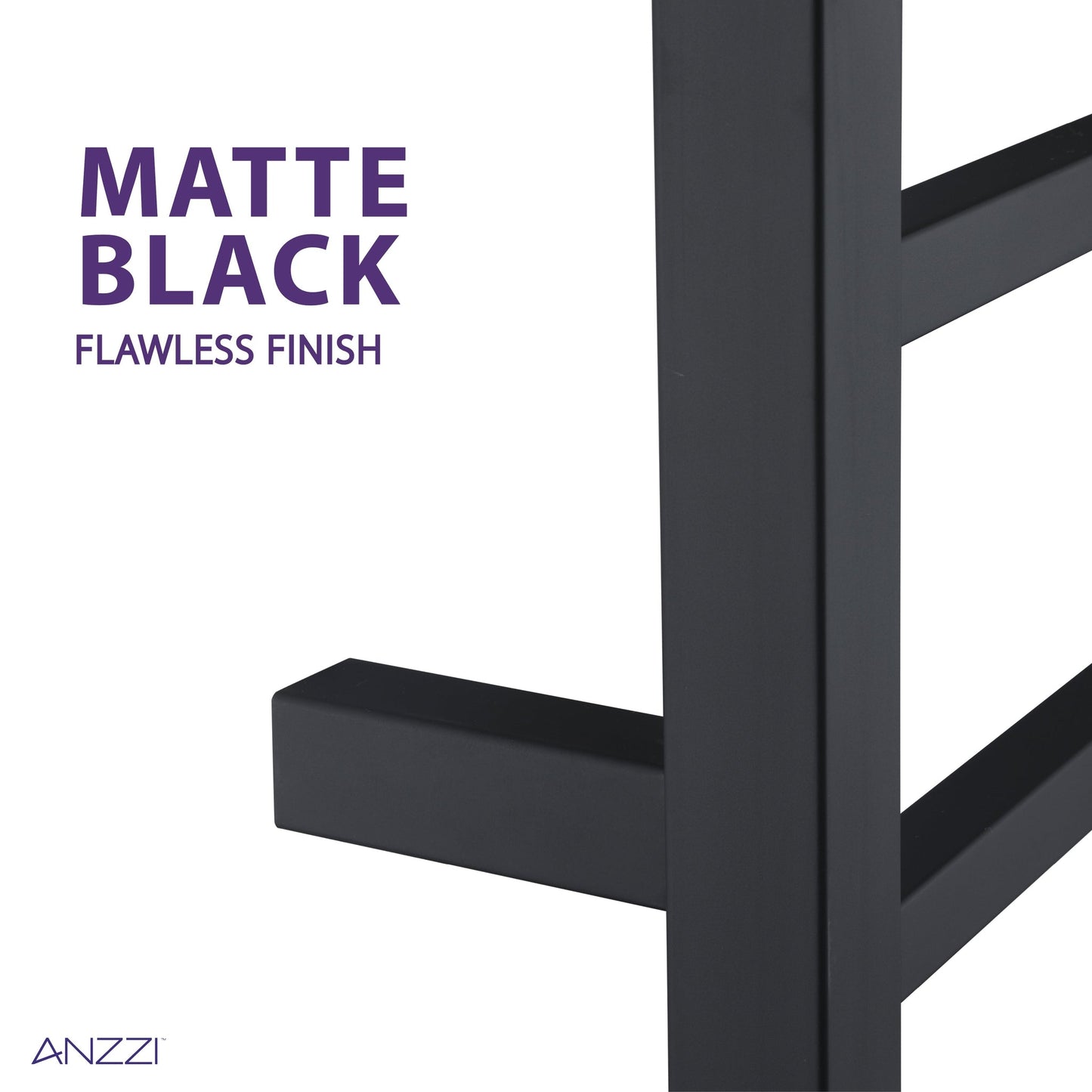 Be embraced by a warm towel after every bath with our ANZZI Bell 8 evenly spaced bar stainless steel wall mounted electric towel warmer rack in matte black. With a modern and minimalist design our towel warmer is safe, reliable and energy efficient with a quick 20 minute warm-up time. No need to worry about rust as our towel warmer is finely crafted from RHINO ALLOY certified rust resistant stainless steel.
