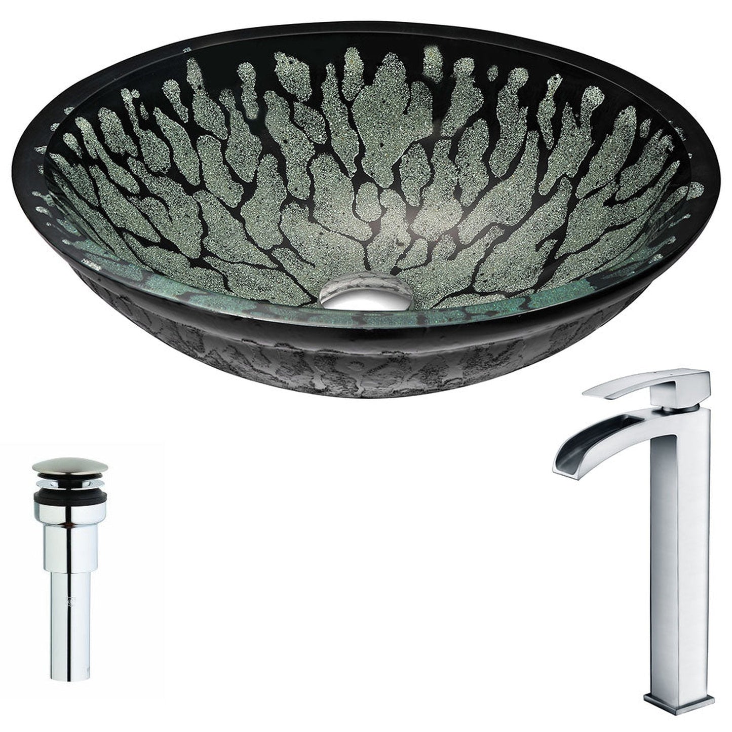 ANZZI Bravo Series 19" x 15" Oval Shape Lustrous Black Deco-Glass Vessel Sink With Polished Chrome Pop-Up Drain and Key Faucet