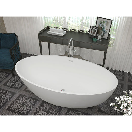 Bring an oasis home with our ANZZI Cestino Solid Surface freestanding soaking bathtub. Ergonomically oval designed to cradle the body's form for maximum comfort this tub is styled with a classic and contemporary flair. Relax and drift away while submerged in your personal spa pool.