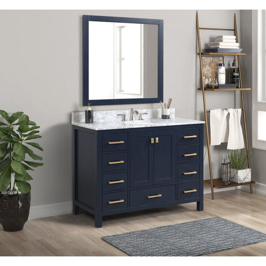 ANZZI Chateau Series 48" x 36" Navy Blue Solid Wood Bathroom Vanity With White Carrara Marble Countertop, Basin Sink and Mirror