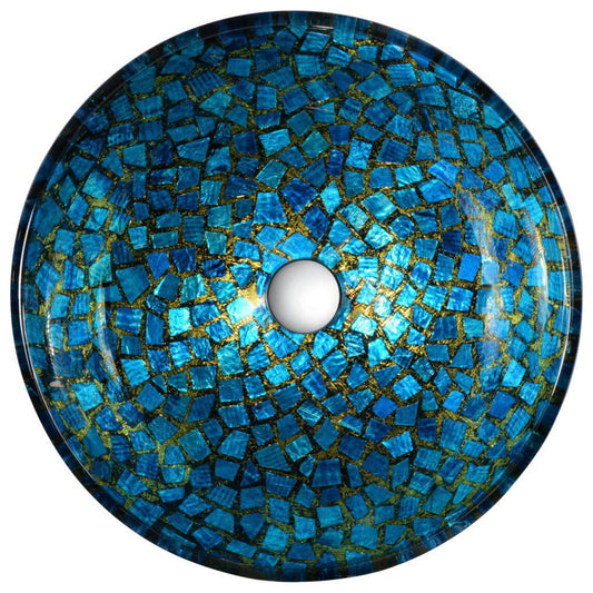 ANZZI Chipasi Series 17" x 17" Round Blue and Gold Mosaic Deco-Glass Vessel Sink With Polished Chrome Pop-Up Drain