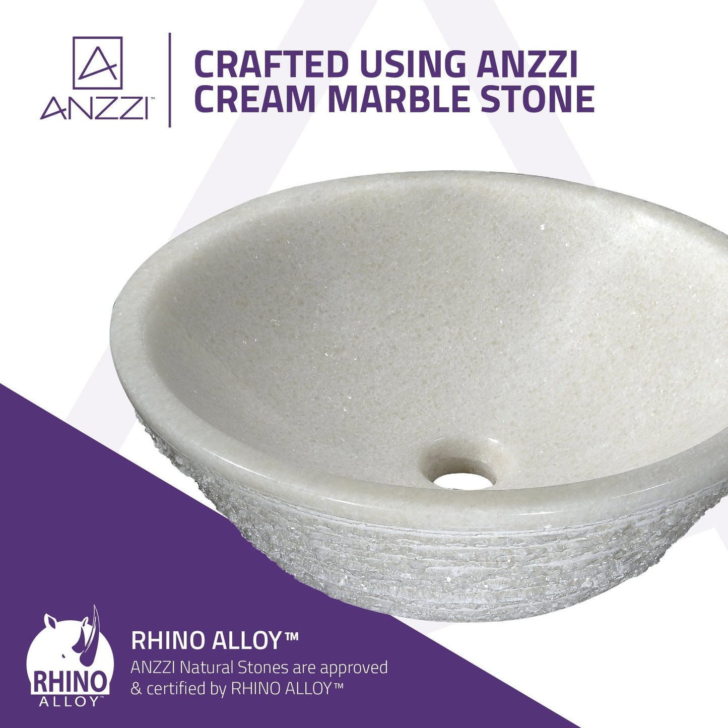 - RHINO ALLOY certified ANZZI Stone craftsmanship for unrivaled durability