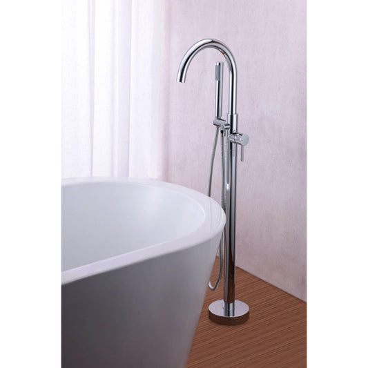 The ANZZI Coral Series 2-handle freestanding claw foot tub faucet with hand shower will add a classic appeal to any freestanding bathtub. Elegantly featuring a swan-like high arched spout, a single handle water lever (controls water temperature and flow), a diverter, and pull out hand sprayer. This floor mounted tub faucet is crafted for durability and is RHINO ALLOY certified.