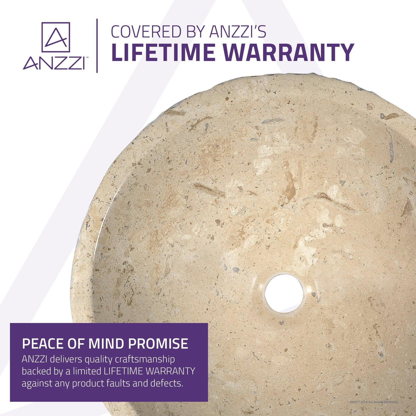 ANZZI Desert Basin Series 17" x 17" Round Cream Marble Vessel Sink