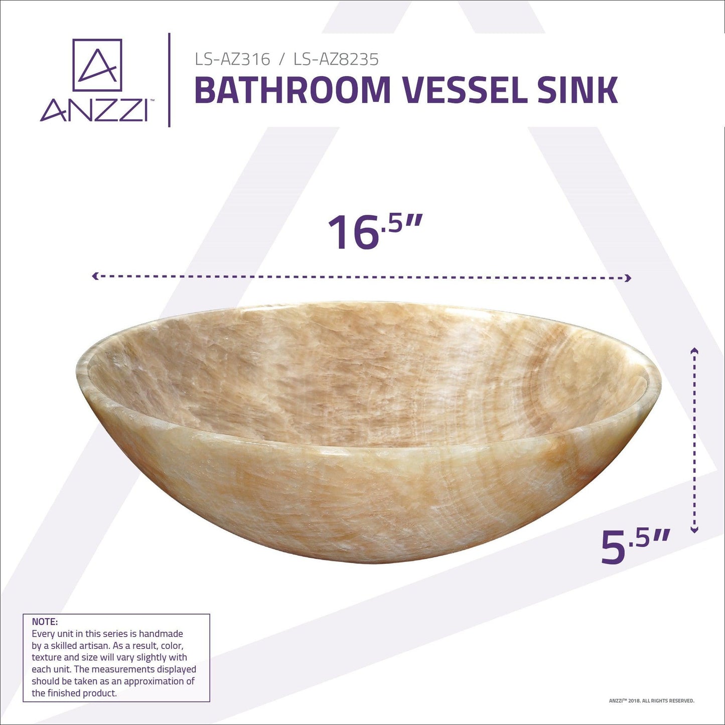 - Each natural ANZZI STONE vessel sink is handcrafted and unique so dimensions and textures may vary