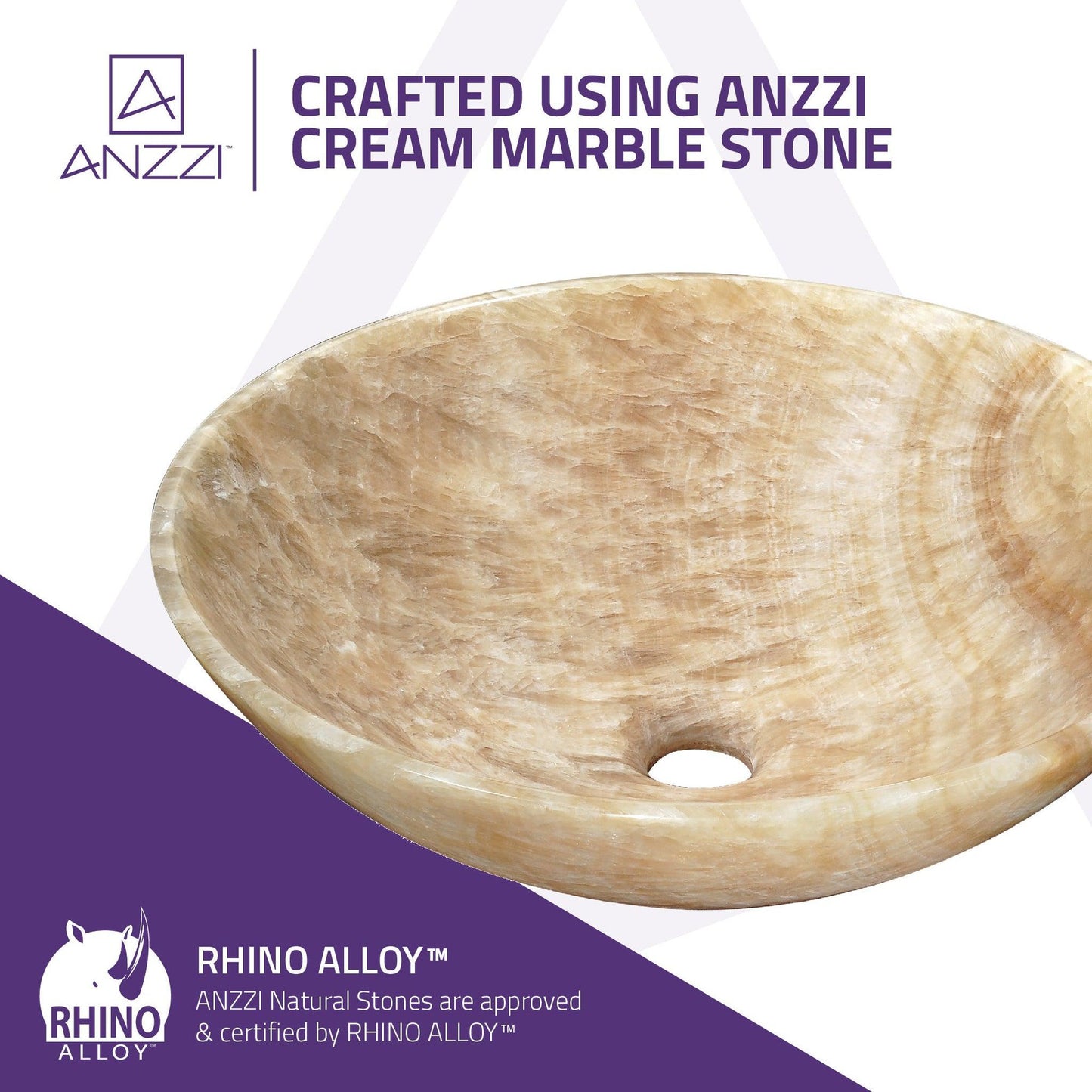 - RHINO ALLOY certified ANZZI Stone craftsmanship for unrivaled durability