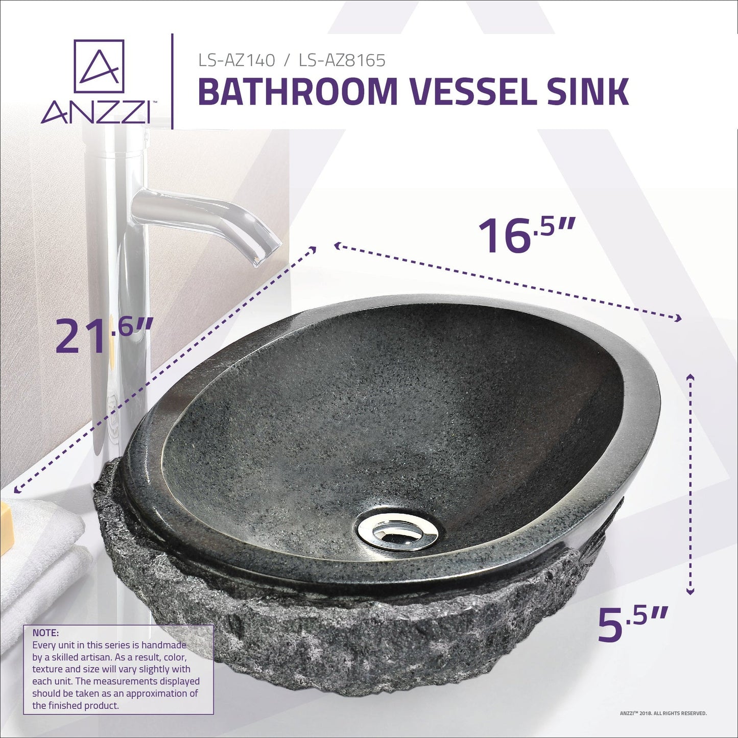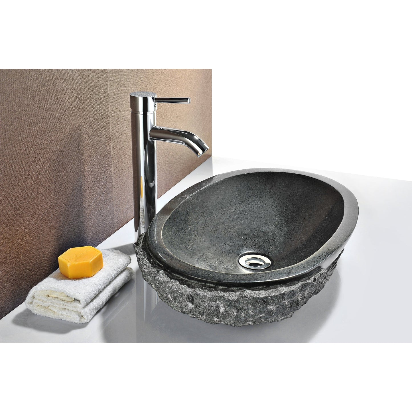 Introducing the ANZZI Dragons Peak Mandy Black handcrafted natural stone bathroom sink. Crafted from handpicked, RHINO ALLOY certified samples of Mandy Black ANZZI STONE the Dragons Peak is handcrafted and polished to exquisite perfection. ANZZI continues its tradition of introducing rising European trends to the North American market. The natural beauty of this sublime sedimentary sink complements many modern bathroom décor and styles.