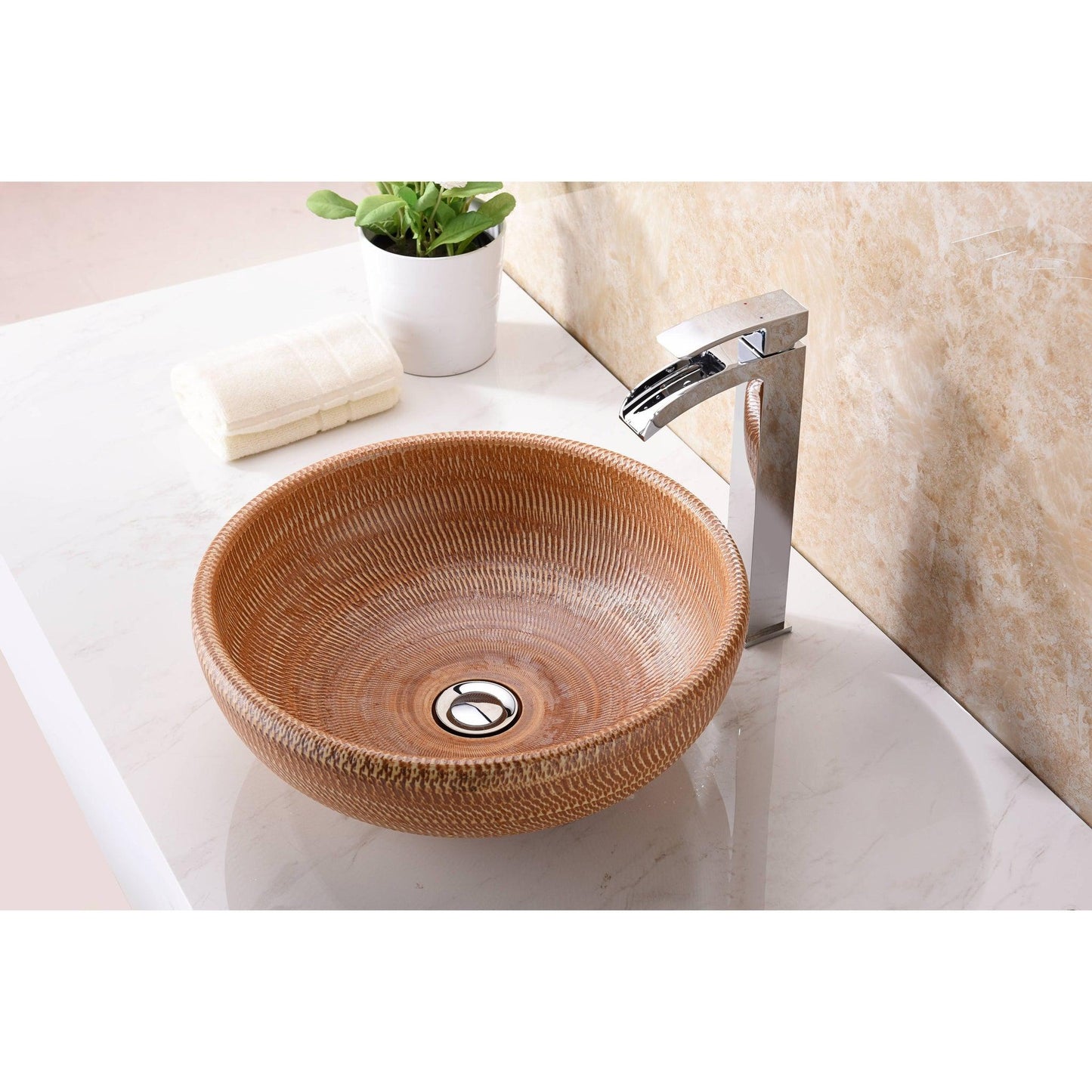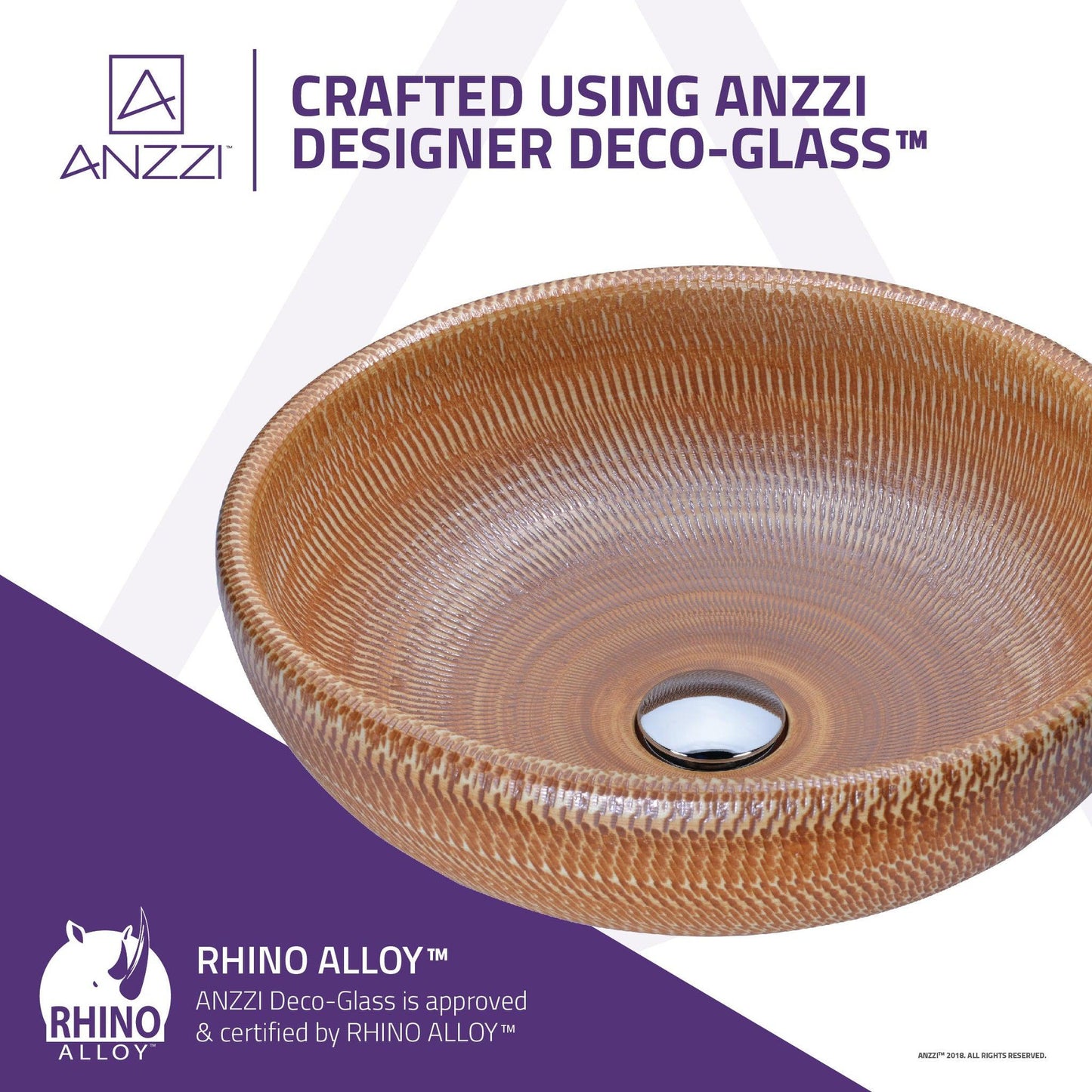 ANZZI Earthen Series 16" x 16" Round Beige Deco-Glass Vessel Sink With Polished Chrome Pop-Up Drain