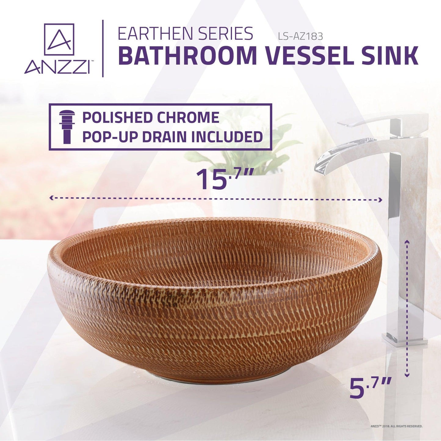 The ANZZI Earthen Series sink is a traditionally crafted round vessel sink adorned in a Creamy Beige finish. Each ANZZI vessel sink is formed using RHINO ALLOY certified high tempered Deco-Glass material. The result is an elegantly shaped and captivating vessel centerpiece for any bathroom counter.