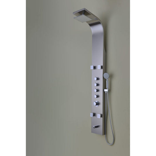 ANZZI Echo Series 63.5" Brushed Stainless Steel 4-Jetted Full Body Shower Panel With Heavy Rain Shower Head and Euro-Grip Hand Sprayer