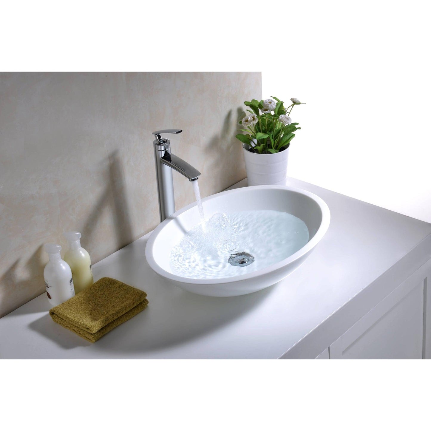 ANZZI Egret Series 20" x 15" Oval Shape White Deco-Glass Vessel Sink With Polished Chrome Pop-Up Drain