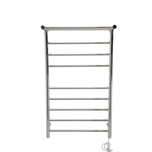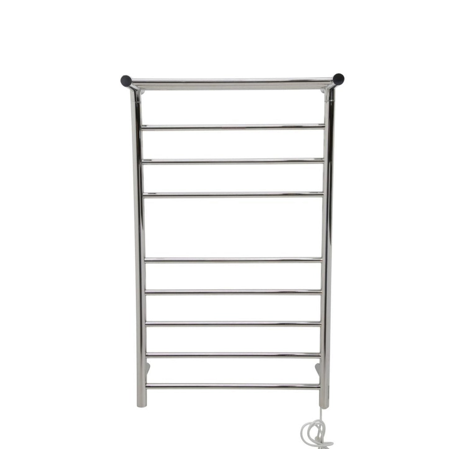 Envision wrapping yourself in a toasty, warm robe courtesy of our ANZZI Eve 8-Bar stainless steel wall mounted electric towel warmer rack in Polished Chrome. With an ingenious design in a 3-5 rail grouping and bonus top shelf, this towel warmer will safely, quickly and evenly warm large thick towels and bathrobes, as well as washcloths and hand towels. Stylishly crafted from RHINO ALLOY certified rust resistant stainless steel for reliability and functionality.
