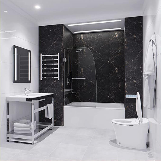 ANZZI continues its tradition of innovative home design with the Grand Series tub glass door. The ANZZI Grand Series features a modern marriage of tempered, crystal clear, DECO-GLASS panels with stainless steel RHINO ALLOY approved hardware finish in beautiful brushed nickel. ANZZI's own TSUNAMI GUARD shielding repels water and prevents fogging and moisture build up. With effortlessly wide opening functionality and cutting edge modern style ANZZI has what you need to build your dream shower.