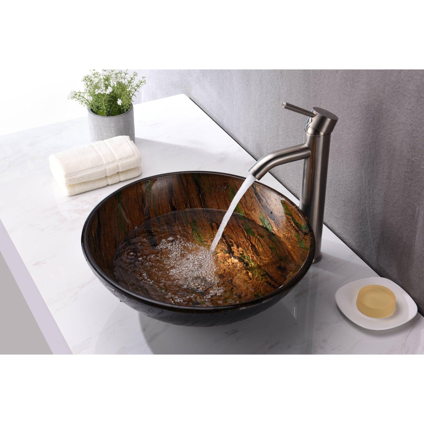 ANZZI Gwazeni Series 17" x 17" Round Shifting Earth Finish Deco-Glass Vessel Sink With Polished Chrome Pop-Up Drain