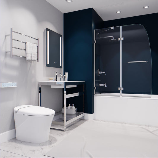 ANZZI continues its tradition of innovative home design with the Herald Series tub glass door. The ANZZI Herald Series features a modern marriage of tempered, crystal clear, DECO-GLASS panels with stainless steel RHINO ALLOY approved hardware finish in beautiful polished chrome. ANZZI's own TSUNAMI GUARD shielding repels water and prevents fogging and moisture build up. With effortlessly wide opening functionality and cutting edge modern style ANZZI has what you need to build your dream shower.