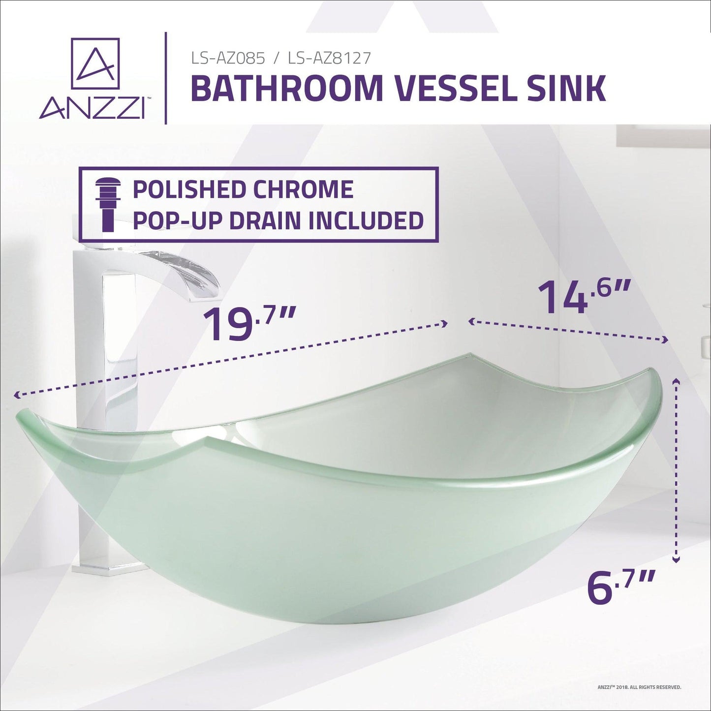 ANZZI Magician Series 20" x 15" Oval Shaped Lustrous Frosted Deco-Glass Vessel Sink With Polished Chrome Pop-Up Drain