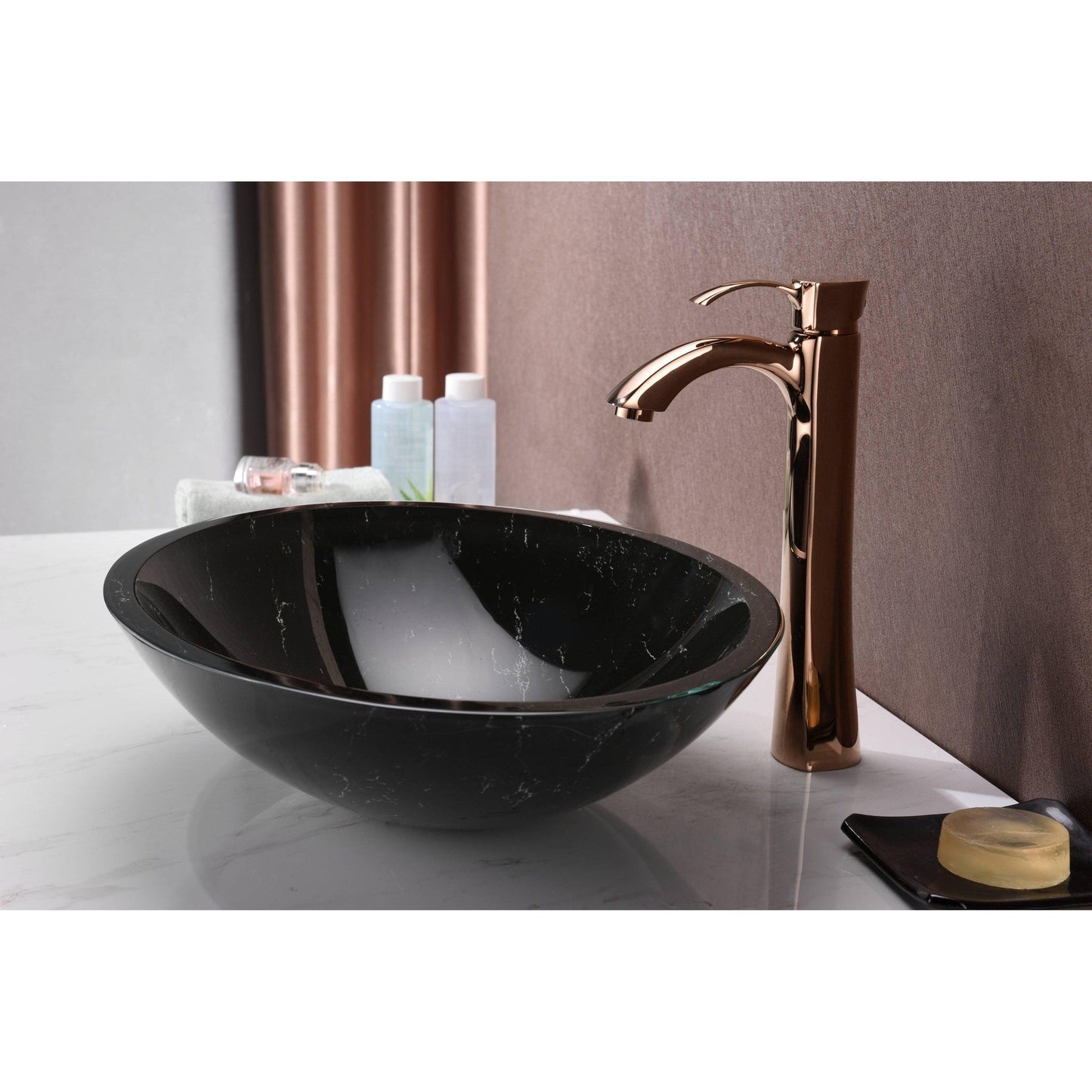 The ANZZI Marbela Series sink is a traditionally crafted round vessel sink adorned in a Marbled Black finish. Each ANZZI vessel sink is formed using RHINO ALLOY certified high tempered Deco-Glass material. The result is an elegantly shaped and captivating vessel centerpiece for any bathroom counter.