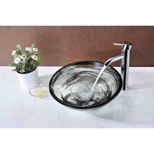 ANZZI Mezzo Series 17" x 17" Round Slumber Wisp Deco-Glass Vessel Sink With Polished Chrome Pop-Up Drain
