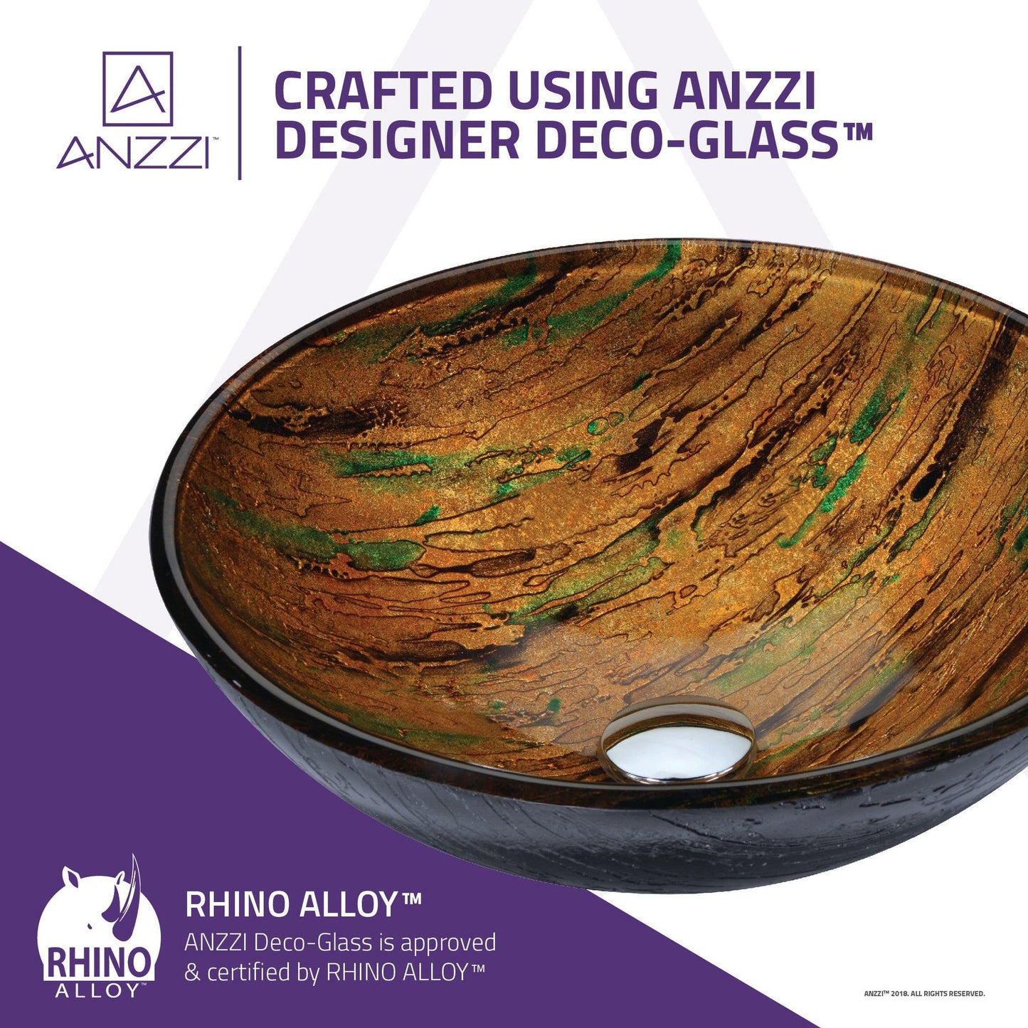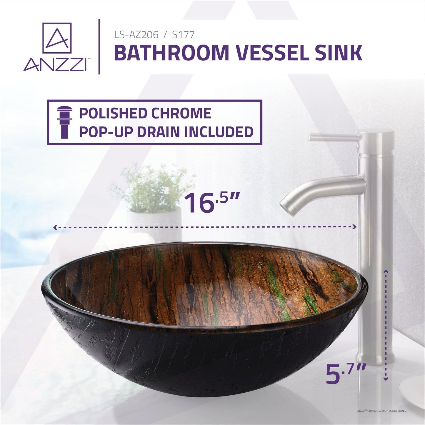 ANZZI Nile Series 17" x 17" Round Shifting Earth Finish Deco-Glass Vessel Sink With Polished Chrome Pop-Up Drain