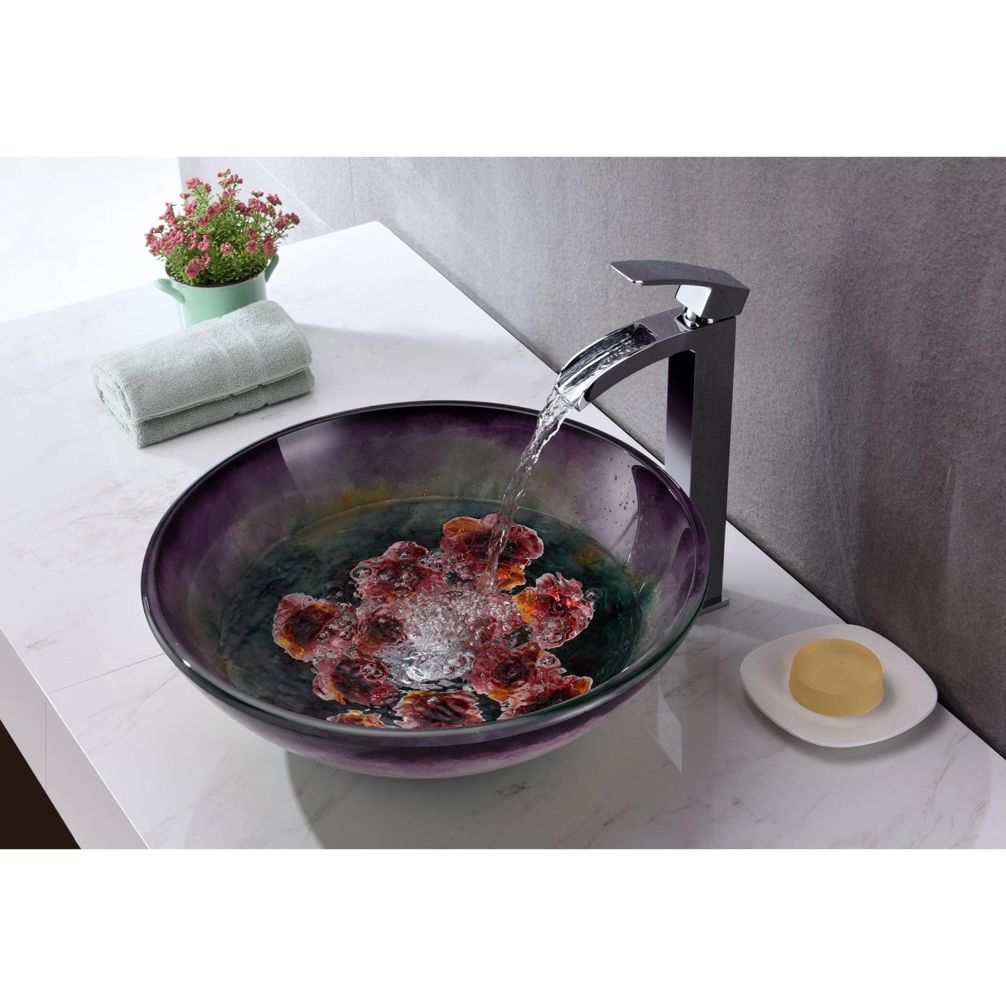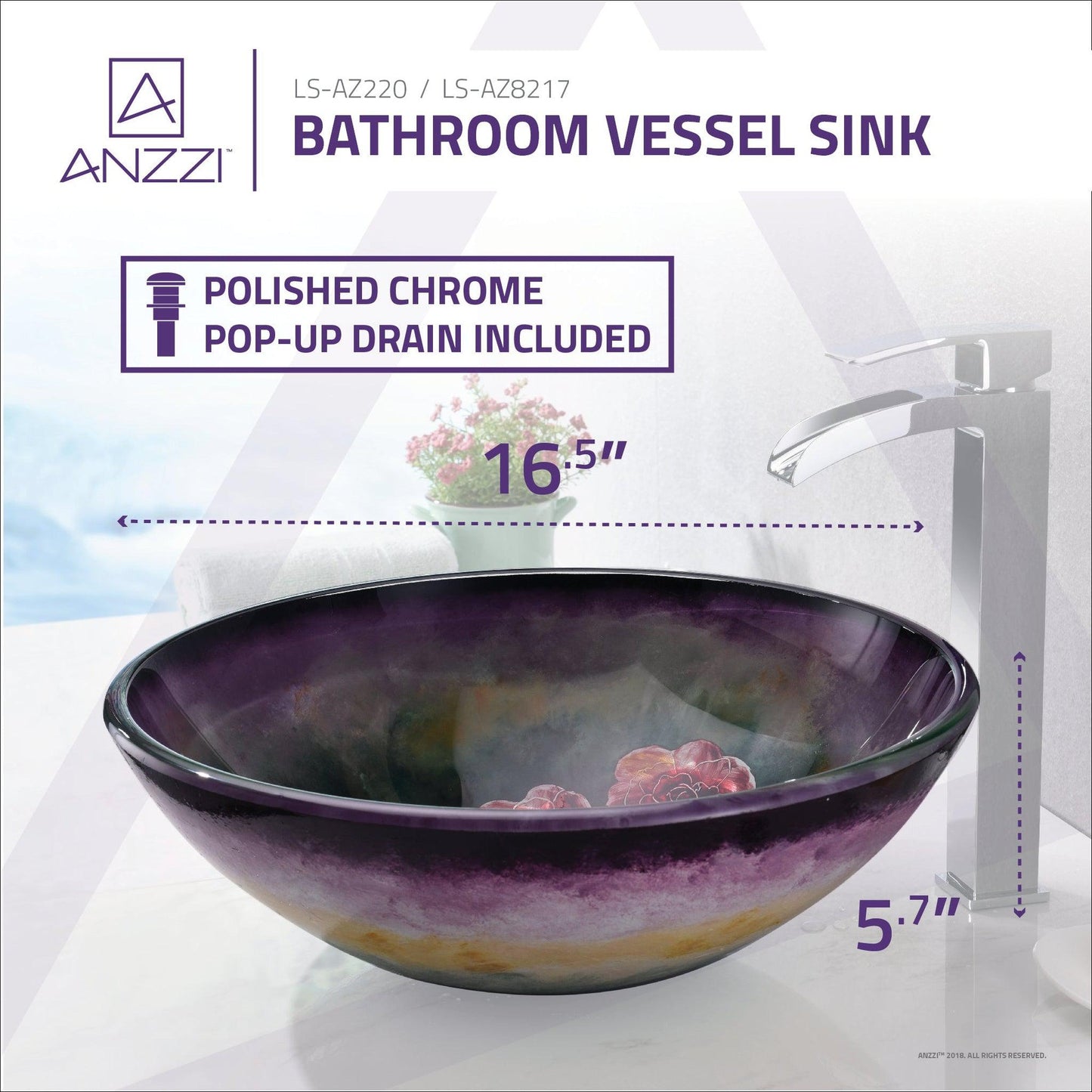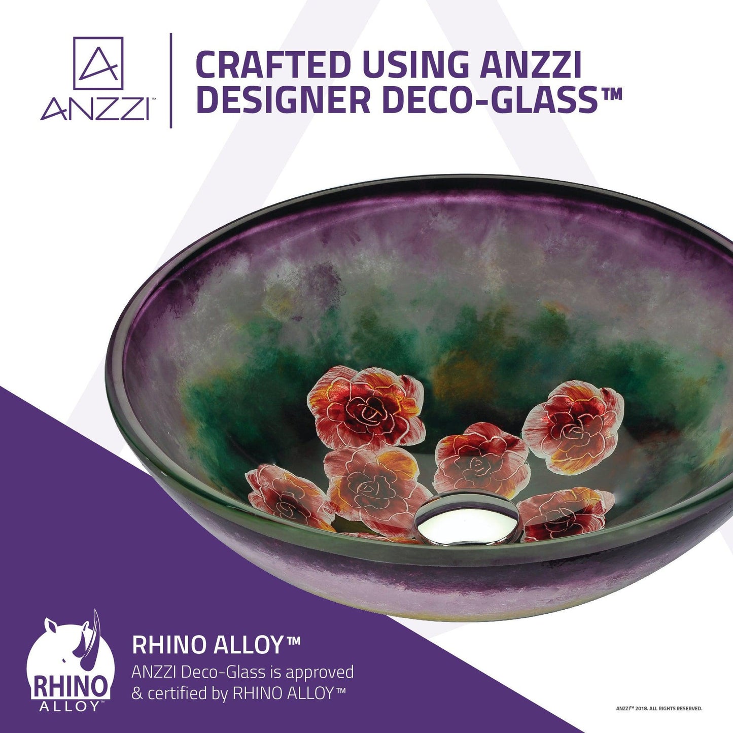 ANZZI Panye Series 17" x 17" Purple Hand Painted Mural Deco-Glass Vessel Sink With Polished Chrome Pop-Up Drain